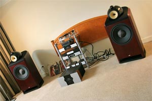 Firma 4Audio nam je nenamerno napravila pravi marketinški “teaser”. Odnedavno su postali zastupnici za prave Hi-End kompanije – Unison Research i Opera. Nažalost, isporuka nije izvršena na vreme, tako da smo uživali u dobro poznatim brendovima. Soba 413 je predstavljala Hi-Fi, a soba 414 home theater sobu. u prvoj sobi su prvog dana svirali prelepi zvučnici KEF Reference 205, pokrenuti od strane NAD elektronike. Sistem su činili CD plejer C542, predpojačalo C162 i dva bridžovana pojačala snage C272. Snaga pojačala iznosi 2×150 vati, odnosno 300 vati kada su povezani kao monoblokovi, što je delovalo i previše za sobu osrednje veličine. Zbog toga se u subotu i nedelju napravila promocija bookshelf zvučnika Gold Reference 10 kompanije Monitor Audio. Ovaj model iz nove Reference serije je stigao specijalni zbog naše izložbe. Prefinjeni izgled ovih kutija je uspešno zadovoljavao čulo vida, dok je zvuk iz ovih malih kutija plenio mnoge posetioce. U ovoj postavci radilo je samo jedno pojačalo snage C272.