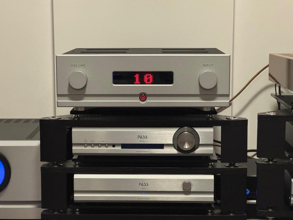 Vreme je da prijavim još par značajnih promena u sistemu Umesto preampa NAT Magnetostat SE došao je Pass XP-32 (sastoji se iz 3 komponente). U odnosu na NAT neke stvari radi bolje - veća dinamika i preciznost - svež, umiven zvuk sa jako malo šuma. A neke je stvari NAT bolje radio - dodavao magiju lampi i obogaćivao zvuk, čineći ga mesnatijim i punim. Umesto snagaških monoblokiva Pass XA60.8 stigli su jači XA160.8. Naveća je promena u teksturi zvuka i čvrstini basa. Zvuk je gušći i udaljeniji, a prezentacija relaksiranija. Bas je mnogo čvršći i bolje definisan… začudio sam se koliko je veliki uticaj na bas! Visoki su i dalje “zaslađeni”, a srednji tonovi su na ATC-u nešto što mora da se čuje! Relaksirano, prirodno, nenametljivo! Ti čarobni srednji tonovi su rekao bih glavna karakteristika ATC-a. Na slici je i preamp Audio Research reference 6SE, koji sam dobio od prijatelja na probu. U pitanju je izuzetan lampaški preamp, ali se preamp Pass XP-32 ipak lepše slaže sa pass XA160.8. Uskoro očekujem i finalnu izmenu, koja će možda i najviše da utiče na celu prezentaciju… so stay tuned Pozdrav svima i živeli!