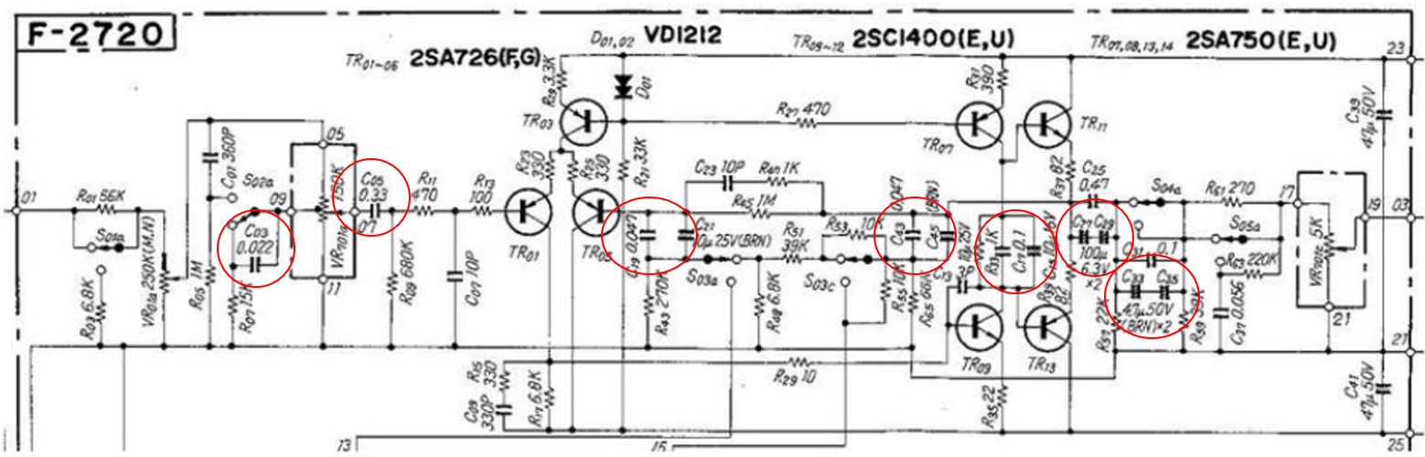 Za C39-C42 uzeo Nichicon ES bipolarce 220uF/50V - knap (više referenci na raznim forumima da se ovdje stave bipolarci)