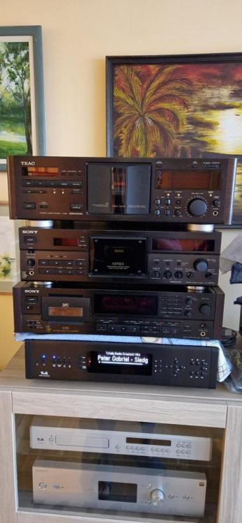 ScepanBG Posted December 20, 2010 Author Report Posted December 20, 2010 Da navedem i ja koje sve dekove imam.Od troglavih Dekova imam u kolekciji : Teac Z-6000,Nad Monitor 6300,Nakamichi Cassette Deck 1,Onkyo IntegraTA-6711 i 2870,Denon DRS-810,Harman/Kardon TD-470,Pioneer CTS-910 I CTS-670D,Technics RS-AZ 7 a od dvoglavih tu su : Technics RSM-85,Fisher CR-WZ1(dupli),NAD Monitor 6100,Pioneer CT-7R,Technics rsm-245x,Denon dr-210 i Grundig CNF-350.Neki od njih su od stajanja zreli za servis.Imao sam(najbolji koje sam imao) : Alpine Al-85 i AL-90,Akai gx-f90/gx-75mkII/95mkII,Aiwa adf-990/xk-009Excelia/Xks-9000/ADS-950,Denon Drm-44hx/drm-800A/Drm-800RG,Teac-a V-850x/Z-5000/V-5000/V-7000/V-6030 S,Kenwood kx-9010,Sony TCK-666/730/950/970/990/808ES,Nakamichi Dragon/Zx-9/Bx-300E/Rx-303E/482z/582/Cr-3e,Pioneer Ct-95/cts-910/Ctf-1250/Cta-9x/ct-900s/ct-777/cts-740s,Harman/Kardon Cd-491/td-4500,JVC tdv-66,Hitachi D-900/De-99,Technics rsb-100/rsb-66w/rsb-965,Dual c-839rc,Luxman k-260,Tascam 122mkII/122MKIII,Tandberg tcd-910...ukupno 138 dekova do sad.Voleo bih da imam Revox B-710/B-215/Studer A-721/H-1,Nakamichi 1000ZXL/700zxl/682/lx-5/cr-7e/Rx-505e/dr-1/dr-10,Marantz Sd-930,Technics Rsm-95,Luxman K-05/04/03/109,Teac V-8030S/Esoteric V-10000/8000s/v i r-9000,v-970x,Pioneer Ct-93,Arcam Delta 100,Kenwood kx-9050s,ACS As-3001,Denon dn-790r,Onkyo ta-2900(2090),Tandberg tcd-3004,Harman/Kardon td-4800,Sony tck-a6/7es/777es,Teac Z-7000...nadam se da cu uspeti da osvarim sve zelje.Evo slika(Dragon zahvaljujuci cenjenom kolegi ZoranuBG,onda Nakamichi 700zxl koji je malo falilo da kupim,Pioneer ct-95,Alpine al-85,Akai gx-75mkII,Harman/Kardon td-470,Nad 6300,Teac v-5000,Sony tck-808es a tu je i kompletna slika dekova od pre 2 godine koje sam imao). Quote