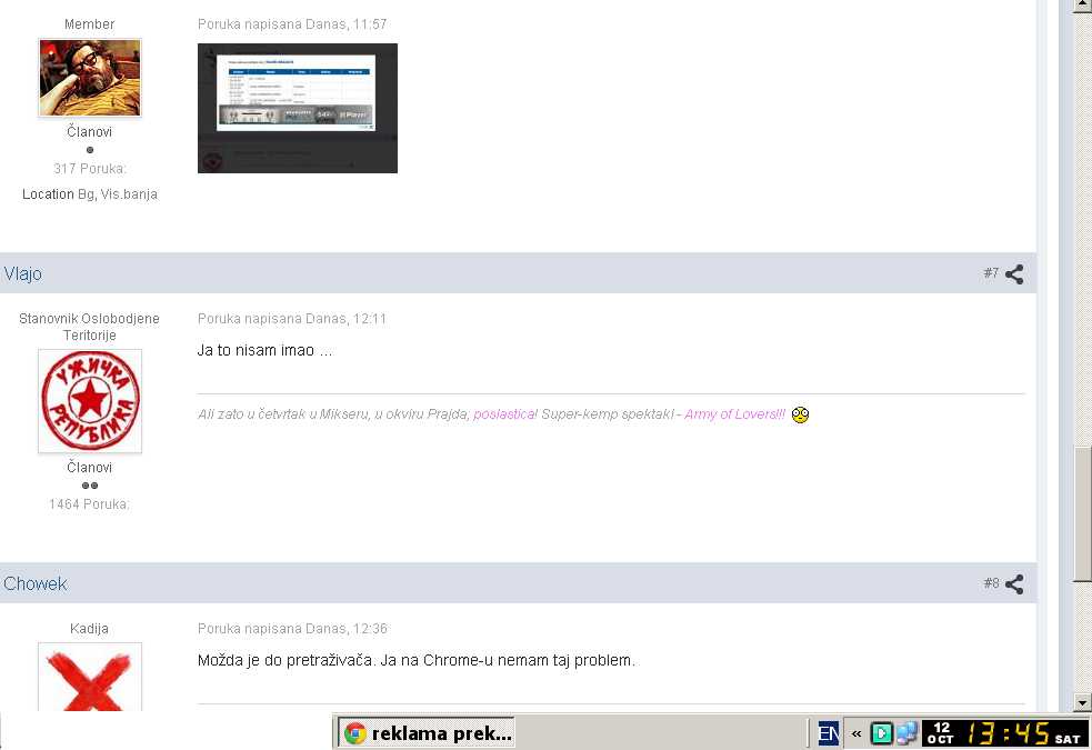 prophet Posted October 16, 2013 Report Posted October 16, 2013 Ovaj problem se periodiÄno deÅ¡ava. Sada je bar podnoÅ¡ljivo, reklama je u dnu slike a ne po sredini kao ranije: Quote