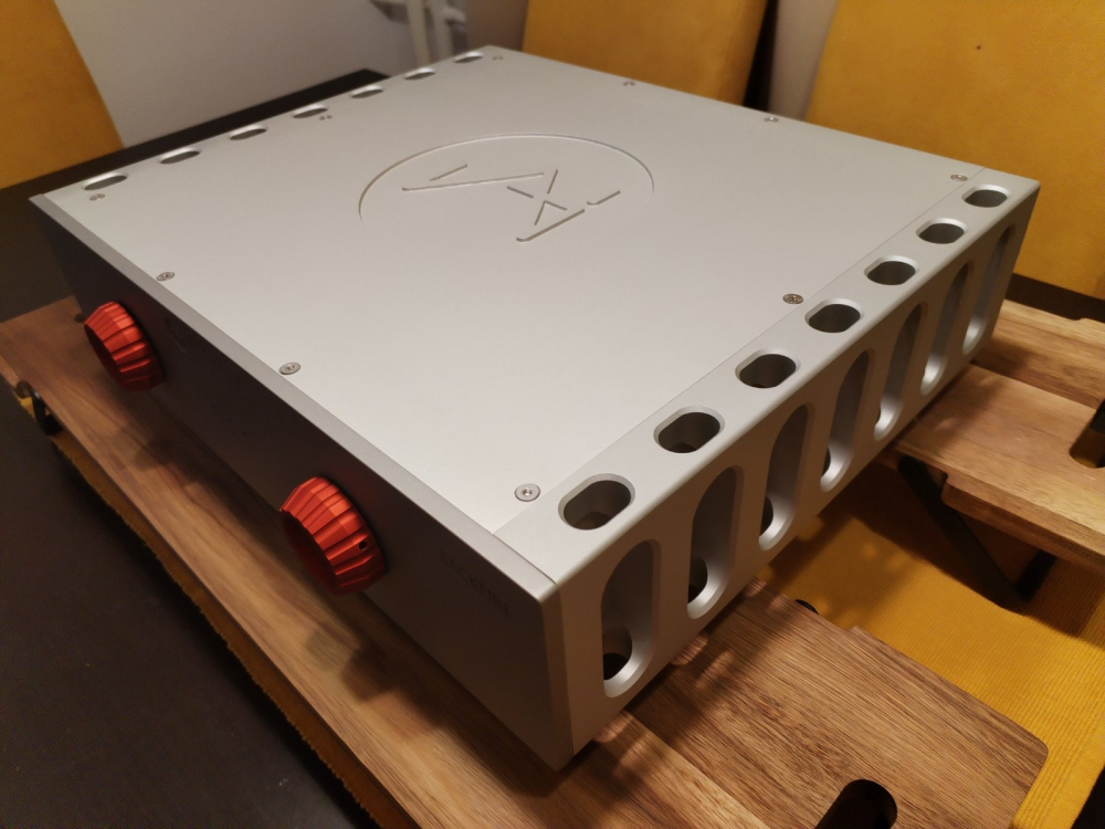 patason Posted February 13, 2016 Report Posted February 13, 2016 Najavio sam ovu temu i evo je,nastaje u jedino moguce doba,radna nedelja gotova,zena i dete spavaju. Zelim da vam predstavim moju novu spravu iz radionice naseg kolege iz Novog Sada Gidjge.Rec je o DAC-u sa cipom pcm1794,sama sema i plocica je autorski rad...i sad da ja nesto ne lupim napisacu ono sto je sigurno tacno,beskompromisno su dacu stvoreni idealni uslovi za rad-detaljnije tehnicko objasnjenje pozivam samog autora da da.Uredjaj ima dva coax ulaza,jednu optiku i usb,usb se konvertuje u i2s unutar uredjaja.Napajanje se vrse dva trafoa jedan za digitaliju drugi za analogni deo koji je izveden discretno dual mono sa j-fetovima.Kako sam ja laik razumeo to je modifikovana i prilagodjena sema iz Passovog D1 dac-a (ako gresim Gidjga ispravi me).Analogni izlaz je rca i balansiran. Goran vec duze vreme razvija ovu spravu i pre 2 meseca mi je ponosno izjavio da moze konacna verzija da se cuje.Prototip je stigao i 5-6 drugara i ja smo to slusali 15-tak dana na 3 sistema.Vec pri prvom slusanju su pocele obrve da se podizu i pitanja koliko to kosta da se napravi i da se prave planovi sta prodati i kako doci do novca.Ja sam imao zadovoljstvo da dobijem SERIAL NO.002. Pao je sledeci dogovor:plocice su tu kao i odredeni broj delova ostalo se porucuje i ceka par nedelja,to i izrada je Gidjgin domen,a ja sam zeleo da se igram dizajna i odlucio da kutiju ne kupim gotovu vec da je napravim po svojim zeljama.Uz pomoc drugara koji ima vrhunsku radionicu ovo na slikama dole je nastalo.Za kutiju laserom isecena razvijena mreza savijana na presi od aluminijuma debljine 3mm.Za srafljenje poklopca koriscene neke kao pop nitne koje u sebi imaju navoj duzine 10mm(vide ce na slikama).Svi srafovi upusteni,laserom otvorene sve rupe na prednjoj i zadnjoj ploci(svaki diy-er zna kakva je muka rucno uraditi otvore za iec,optiku,usb...),kutija ocetkana i eloksirana.Kod strugara naruceni tockici i nogice od dur aluminijuma.Na prednju plocu od 3mm dodata jos jedna debljine 6mm sa zavarenim brezonima iznutra da se spreda ne vide nikakvi srafovi.Tu se moj deo posla zavrsio a na scenu stupio pravi majstor. Paralelno dok sam ja jurio kutiju plocice su zalemljene i istestirane.Pakovanje bilo pesma sa svim otvorima u stotu preciznim (bila malo frka da li smo mi dobre mere dali majstorima i da li su ih oni verno preneli ali sve pod konac-OLAKSANJE).Gidjgina pedantnost,preciznost,pakovanje kablica,svi srafovi imbusi nigde nista ne strci....ma sta da pisem pogledajte slike bice vam sve jasno. Prototip i moj dac su slicni, veliki kondovi epcos,ostali elne,nichicon,panasonic,blokovi wime i ero,j-fetovi (ima ih 60-65 kom)upareni (hvala Impulsu za to i za moralnu,konsultantsku,savetodavnu i svaku drugu pomoc). Razlike u odnosu na NO.1 su sledece:cmc posrebreni sasijski rca,neutrik xlr-ovi,sprezni kondovi mundorf beli bajpasovan sa nekim ruskih NOS teflonima (jos jednom hvala Impulsu). E sad konacno posle dugog uvoda ono najbitnije ZVUK!!! Neko ce reci hvali SVOJ uredjaj,mozda, ali moje misljenje o zvuku sam stekao kad nije bio moj i na osnovu tog misljenja sam pozeleo i ostvario zelju da ga imam.Da je bilo drugacije pri slusanju prototipa ne bi bilo mog uredjaja ni ovog pisanija.Jos nesto,koliko ovaj uredjaj dozivljavam svojim jednako je,mozda i vise i Gidjgin.Tako da ovde vise zelim njemu da odam priznanje za majstorstvo,znanje i uspesno realizovan projekat ,u svim aspektima izuzetan i iznad nivoa fabrickih uredjaja.Cene diy i fabrike nikad ne mogu realno da se porede,svi znamo zbog cega,ali audiofila oportunistu za sta sebe smatram to ne treba da brine.Iz kooperacije Gidjga- Impuls vec imam jedan uredjaj phono preamp PASS X-ONO clone i iskreno se nadam da sam sa dacom prosao kao i sa phonom,da na toj poziciji necu nikad menjati uredjaj jer ne postoji nista ni blizu ni bolje od toga posebno kad se uzme u obzir cenovni disparitet.To sam se za X-ONO uverio da je tako,za dac jos nisam frisko je,ali nadam se da je Impuls i ovaj put u pravu (Gidjga je skromniji-siguran sam da je samo pristojan da ne hvalisa svoje,ali zna i on sta je napravio i vrlo je ponosan na to.) Imao sam na poziciji dac-a pre ove sprave vrlo dobre,cak odlicne dacove,ali ovde se dobila neka nova dimenzija koju nisam cuo ni kod sebe ni drugde.Objedinile su se sjajne osobine brojnih uredjaja koje sam imao i slusao,svaki je u necemu bio odlican ali sam i uvek imao neku zamerku-ono e,kad bi kontrabas malo vise "zavibrirao" ili da je bas dubok kao sad a definisan i precizan kao na onom drugom,kome je opet falilo valo vazduha na visokim i tako u krug.E sad mi se cini da se ovde krug zavrsio. Ovaj dac sve radi savrseno po meni,linearan u celom spektru.Ne dominira u svirci bilo kakav karakter dac-a,nema ga,uvek je na sceni karakter same muzike,produkcije!Ako je muzika nezna,svilena,emotivna tako je odsvirana,ako je dinamicna,energicna,eksplozivna takva i bude.Komentari drugara koji se poklapaju sa mojim misljenjem su da mi je ranije sistem svirao dobro ali uvek isto,akcenat je na detaljnosti i otvorenosti a da ostatak isprati to korektno.Sada je to druga dimenzija,neverovatna detaljnost u srednjim tonovima i u basu (u visokim je lako to sve dobiti),pri tome takva cistoca,kristalno jasno,precizno,raslojeno na tri puta vise slojeva muzike nego ranije.Pri tome ono sto je meni vrlo vazno i tu nisam spreman na kompromis,toliko muzikalno,emotivno,leprsavo,vazdusasto(naravno gde to treba da bude) i uz sve pre navedeno to je za mene fenomenalno. U hi fiju vazi pravilo da iskusni i posveceni audiofili mogu naci uredjaje koji od deset kriterijuma zvuka imaju 7 odlicnih,2 vrlo dobra i jedan dobar.Tu bi se lako moglo ili moralo zaustaviti,jer bi dalja potraga dovela da raspada porodice,bankrota,smestanja u institucije i sl. Ja se smatram posvecenim ovom hobiju (uz ocuvanje gore navedenih drugih aspekata zivota),nije mi strano da danima testiram vise uredjaja,da nedeljama od 22-04h testiram kablove menjam na njima konekt
