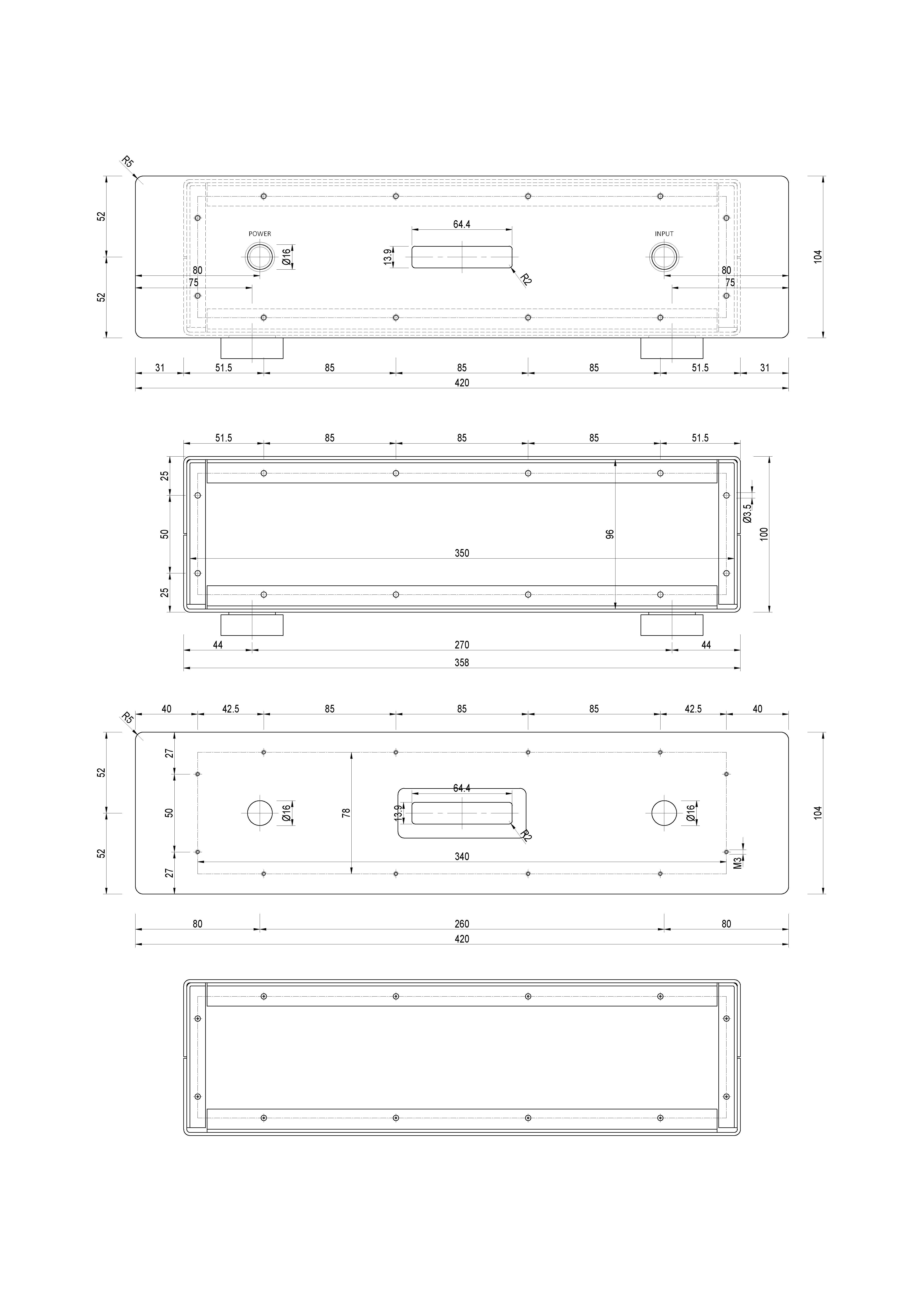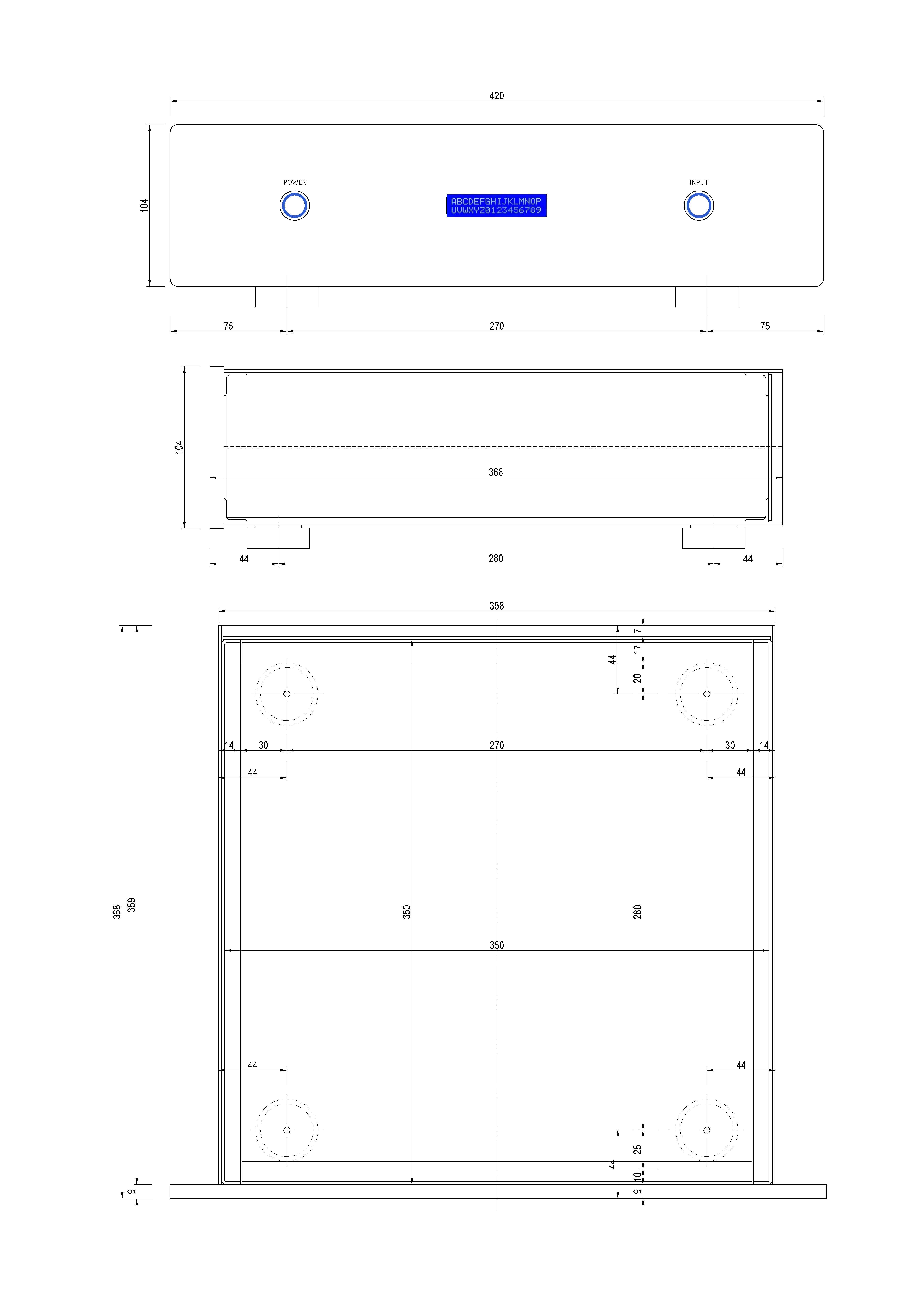 Nixie Posted August 20, 2025 Author Report Posted August 20, 2025 Krco evo nađoh crtež kutije. Ipak je sve od 2mm Al lima napravljeno. L profili su 15x15x1,5mm. Front je debljine 9mm napravljen od lima 10mm. Leonardo je napasovao display malo drugačije nego što sam nacrtao, napravio umetak od dimljenog klirita, znači samo taj detalj nije tačan, ostalo jeste. Ja kad bih pravio neku veću kutiju da gornja ploča nosi trafoe, prigušnice i lampe, uzeo bih najmanje 4mm Aluminijumski lim ili 2-3mm pa ojačavao L profilima. Naravno, L profili će tu i tamo da diktiraju raspored elemenata, a biće vidljivi i šrafovi ili nitne koje ih povezuju sa pločom. Postoji i opcija dve ploče od 2mm a između recimo guma 2mm pa sve to lepo zalepiš sintelanom. Dobiješ na krutosti puno i imaš damping vibracija. Quote