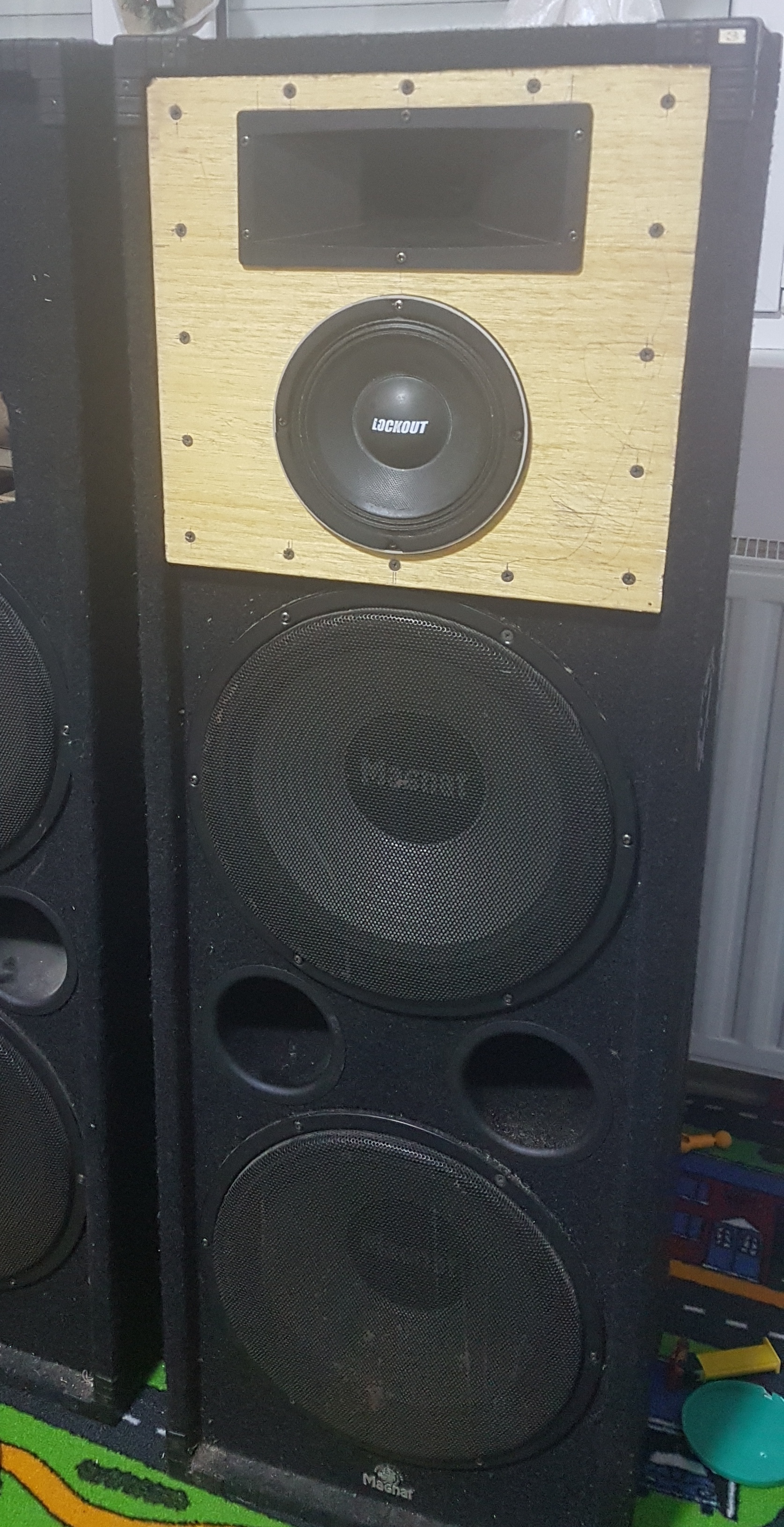 Nebojsaa Posted February 19, 2023 Report Posted February 19, 2023 Pozdrav clanovima ? Prvo sto bi imao da kazem, je da konstruktora ovih zvucnika treba zakljucati u gluvu sobu, pustiti mu omiljenu pesmu na njegovom remek delu, 24h (ako bi u opste izdrzali da sviraju toliko) Naime, radi se o zvucnim kutijama Magnat soundforce 2300 Po konfiguraciji 4 way 2x 330mm bas i 4x piezo ( u samom kucistu piezo postojao je neki otpornik, namotaj) pa se fabricki dele na 2x mid i 2x tweeter horn. Rezani na 800/1500/4000Hz 96dB i sve to u paraleli zalemljeno na jednu plocicu, ne postoji fabricki skretnica. 10 punih godina ti zvucnici tako rade, odnosto bruje vibriraju i piste. Necu da preteram, ali preko 20 piezo drajvera sam zamenio. Pre par godina u jedan od levaka sam ugradio rcf dajver 10w 16Ohm, naravno i on je pregoreo. Razna pojacala su pokretala zvucnike. Od Pioneera vsx 808, Sansui av 7000, 2x mono bloka do aktivne mixete. (Neverovatno je to, sto su resiveri pokretali te basove olako i nista manje od snagasa) Posle dugog stajanja resio sam da iole posvetim malo paznje kako bi ove hi fi/Pa kutije zasvirale. Ugradjeni trenutni drajveri: Visoki: Pa drajver Sica cd 83.26 20/40w 8Ohm 107dB (kompletna dokumentacija) Srednji: Nepoznat. Fi 17cm magnet 12cm, zatvorena korpa, unimer kaze 6.5Ohm pretpostavka +-100w Bass: Magnat MWS 300 CP 8120 150 / 300 Watt 8 Ohm 20-450 Hz 92dB x2 (i to su svi parametri koji postoje) Zamisao je bila da se uradi skretnica prema trenutnim drajverima. Posle 2 poziva, ustanovio sam da sa informacijama sa kojim raspolazem ne mogu nista. Druga mogucnost je trosistemska aktivna skretnica, snagas za basove, snagas za druga dva zvucnika, eventualno neko 100w hi fi? + mixeta +- 500e u startu A, da li postoji prva mogucnost ? Sve dolazi u obzir. Ukidanje jednog basa, pregrada kutije..... Izvinjavam se sto sam se raspisao ovoliko. Stvarno bih zeleo da iole koliko je to moguce zasviraju. Namena im svakako nece biti zatvoren prostor. 5x godisnje ispred kuce da se iznesu Emotivno sam vezan za njih. Uspomena na pokojnog drugara. Hvala ? Quote