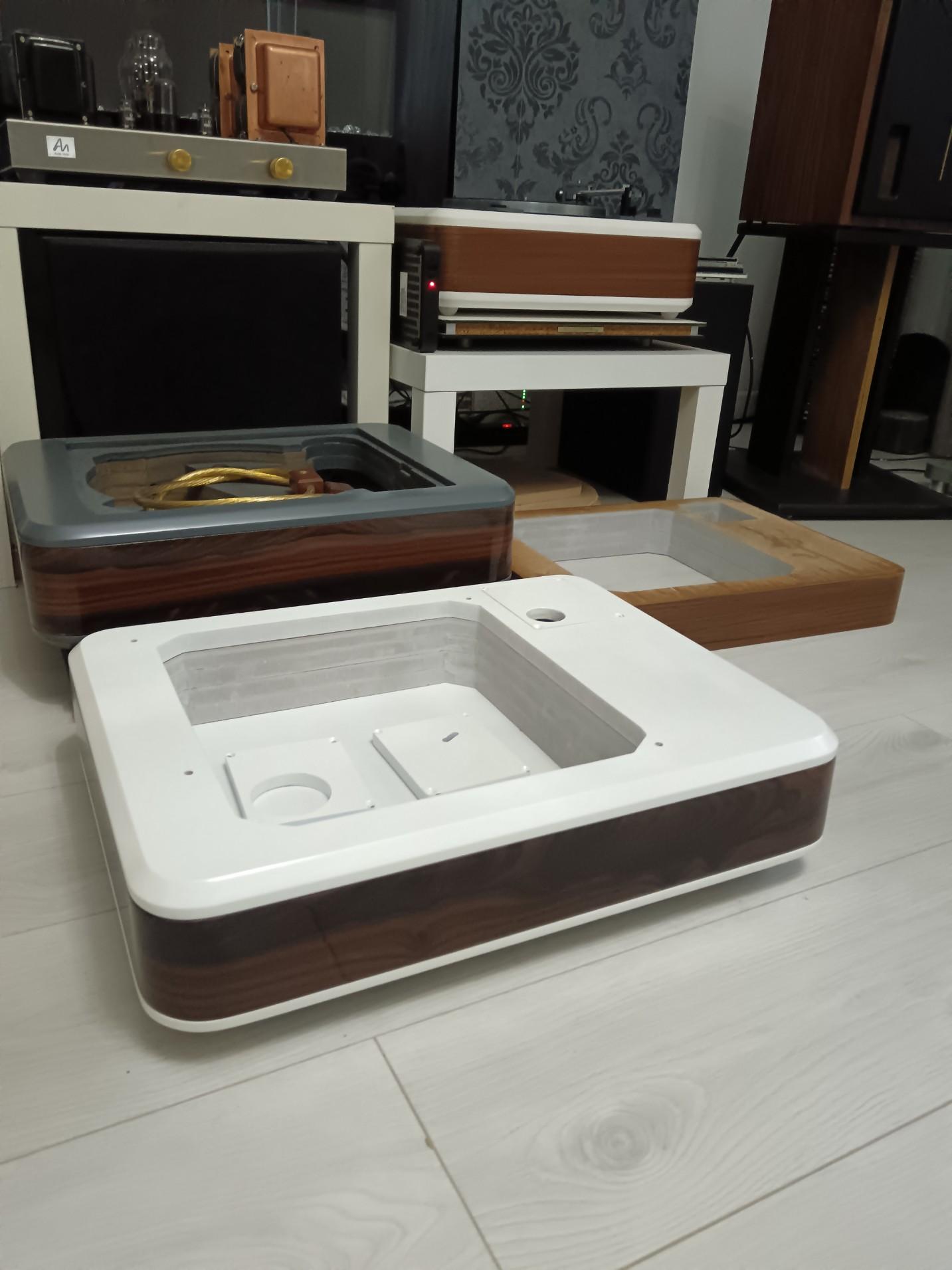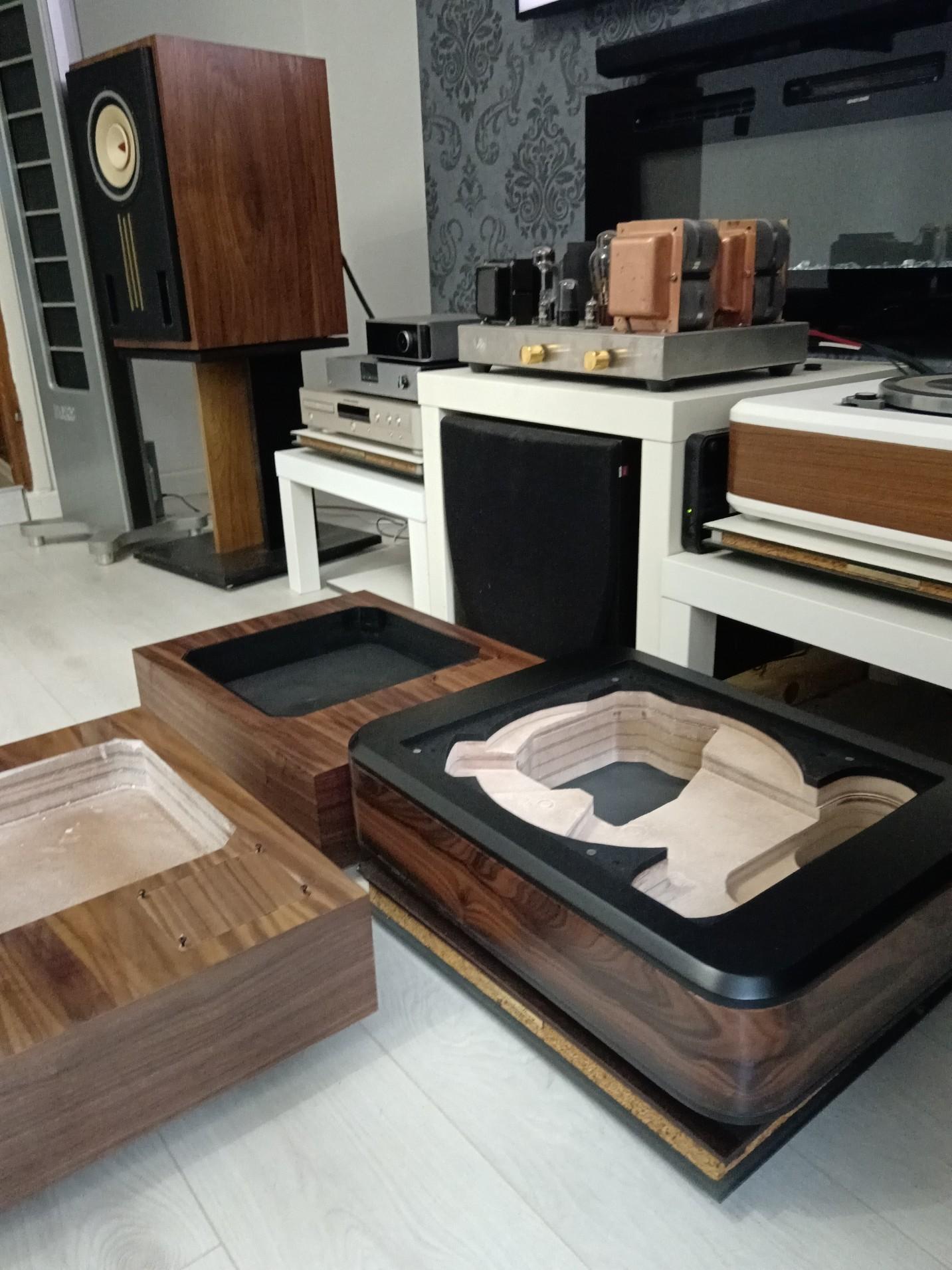 Dacho Posted September 24 Report Posted September 24 Kao što sam vec i spomenuo, vec neko vrijeme se zabavljam sa izradom plinthova za gramofone, uglavnom Lenco L 75/78, Technics SP10 i Dual 1019. Uskoro ce biti i Gerrard 401, te Technics SL 1200/1500. Za osnovu koristim mdf u vise slojeva a zavrsna obrada je furnir ili dvobojno mdf/furnir. Quote