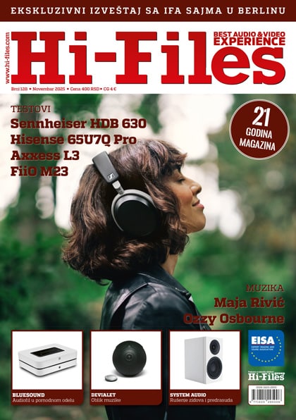 Novi broj časopisa Hi-Files naći će se u prodaji u subotu, 1. novembra. Pored najnovijih vesti iz audio-video sveta, u novom izdanju možete pročitati opširni izveštaj s ovogodišnjeg IFA sajma u Berlinu, kao i reportažu s EISA gala ceremonije dodele nagrada, koja je poslednji put održana u Ascotu. Testove hi-fi opreme u ovom broju predvode regalske kutije Classic 3/1 renomirane kompanije Spendor, a od podnostojećih kutija testirali smo danske Axxess L3, koji plene modernom pojavom i sjajnim zvukom. Kao odlično rešenje za ograničen budžet nameću se takođe danski bukšelfovi System Audio Signature 5, a u srazmerno pristupačnoj kategoriji nastupa i novi Bluesound POWERNODE, koji sadrži pojačalo, DAC, strimer i izlaz za slušalice u kompaktnom i modernom kućištu – eto kako se za oko 2.000 evra može sastaviti veoma dobar i sposoban stereo sistem. U sve popularnijoj kategoriji bežičnih dvokanalnih sistema testirali smo rešenja uglednih kompanija Electrocompaniet i Devialet – prvi nude kombinaciju Rena S2 i Tana L2 kao oličenje skandinavske estetike i filozofije zvuka, dok se za dvostruko više novca može dobiti par novih Devialetovih Phantoma Ultimate 108 dB, koji donose neponovljivu francusku avangardu i 1.100 vati po kanalu. Nakon dužeg vremena, u jednom izdanju imamo čak dva televizora, oba s ekranom od 65 inča – Hisense 65U7Q PRO pripada kategoriji pristupačnih uređaja, koji pružaju zaista mnogo za uložen novac, dok Samsung QE65QN90F nastupa u klasi iznad i donosi najsavremenija tehnička rešenja i napredni AI. Testovi mobilnih uređaja takođe su raznoliki, pa možete pročitati naše utiske o najnovijim Sennheiserovim bežičnim slušalicama HDB 630, koje teže da donesu precizan i neutralan tonski pečat u blutut kategoriju. Kao prestižno rešenje za izuzetan zvuk u pokretu testirali smo FiiO M23, koji će odlično raditi i na poziciji kućnog izvora za digitalni audio, a kao savršeno rešenje za aktivnosti u prirodi nameće se robustni blutut zvučnik Soundcore Boom 3i. U rubrici “Muzika & Film” možete pročitati intervju sa džez vokalistkinjom Majom Rivić i upoznati se sa životnim putem začetnika heavy metala Ozzyja Osbournea i holivudskog dobrog momka Roberta Redforda. Slede recenzije najnovijih muzičkih i filmskih izdanja, dok su poslednje stranice rezervisane za pregled najboljih uređaja koje smo do sada testirali.