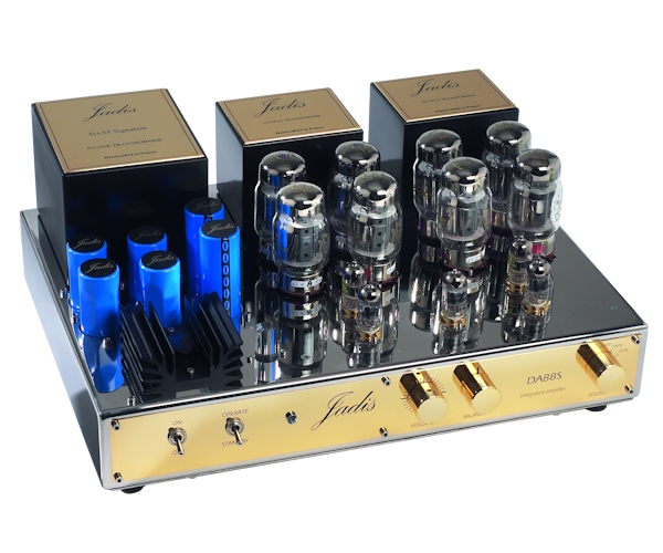 Najzanimljiviji deo Jadisa nalazi se na gornjoj strani i ovde pronalazimo osam velikih cevi KT120 – četiri po kanalu – koje rade u čistoj klasi A i pružaju 2 x 60 vati. Fabrika navodi da je DA88S razvijen po ugledu na DA50S, ali sa udvostručenim brojem cevi u izlaznom stepenu, pa je i snaga duplo veća. Pored toga, na izlazu se mogu koristiti cevi KT88, KT90 i 6550, a bias se podešava automatski, što garantuje dobru zabavu za posvećene audiofile. Ulazna sekcija opremljena je s tri cevi ECC82 i dve cevi ECC83, a uz zadnju ivicu kućišta postavljena su dva izlazna transformatora, svaki u svom oklopu. Leva strana rezervisana je za napajanje, kod kojeg se ističe još veći transformator, a ispred njega je postavljena banka od šest elektrolitskih kondenzatora, kao i hladnjak. Svi transformatori na gornjoj strani oklopa imaju zlatni panel, s naznakom ručne izrade u Francuskoj i logotipom kompanije u prelepom kurzivu. Zadnja strana po kvalitetu ne zaostaje za ostatkom uređaja i ovde je smešteno pet linijskih RCA ulaza i jedan izlaz, svi s pozlaćenim šasijskim konektorima. Središnji deo zauzela su četiri para zvučničkih terminala, koji omogućuju bi-wire povezivanje, dok se u desnom delu nalazi IEC utičnica za odvojivi napojni kabl.