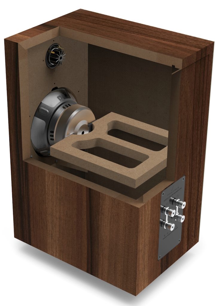 Iako nema zvaničnih podataka, naša merenja pokazuju debljinu zidova od 18 milimetara, bar kad je reč o gornjoj, donjoj i bočnoj strani. Fabrika navodi da je unutar kabineta integrisan patentirani sistem DVAS (Driver Vibration Absorption System) – u pitanju je svojevrsno vodoravno ojačanje, koje preko penastog polimera pritiska motor mid-bas jedinice sa zadnje strane, čime se umanjuje prenos vibracija, a ujedno se povećava krutost celog kabineta. Na zadnjoj strani nalazi se elegantni panel u crnoj boji visokog sjaja, koji sadrži dva para zvučničkih terminala, čime je omogućeno bi-wire i bi-amp povezivanje. Terminali su odlično izrađeni, u potpunosti od metala, i prihvataju sva tri uobičajena tipa povezivanja (gole žice, bananice i viljuške), a kratkospojnici su takođe metalni. Fabrika navodi da je skretnica redizajnirana u odnosu na BR03, a rezultat je spuštanje donjeg praga sa 46 na 44 kiloherca, uz zadržavanje vrlo dobre osetljivosti od 90 decibela. Nominalna impedansa iznosi osam oma, ali je još važnije da ona nikad ne opada ispod 4,6 oma, pa BR04 neće previše opteretiti amplifikaciju i pogodni su za uparivanje s pojačalima manje snage.
